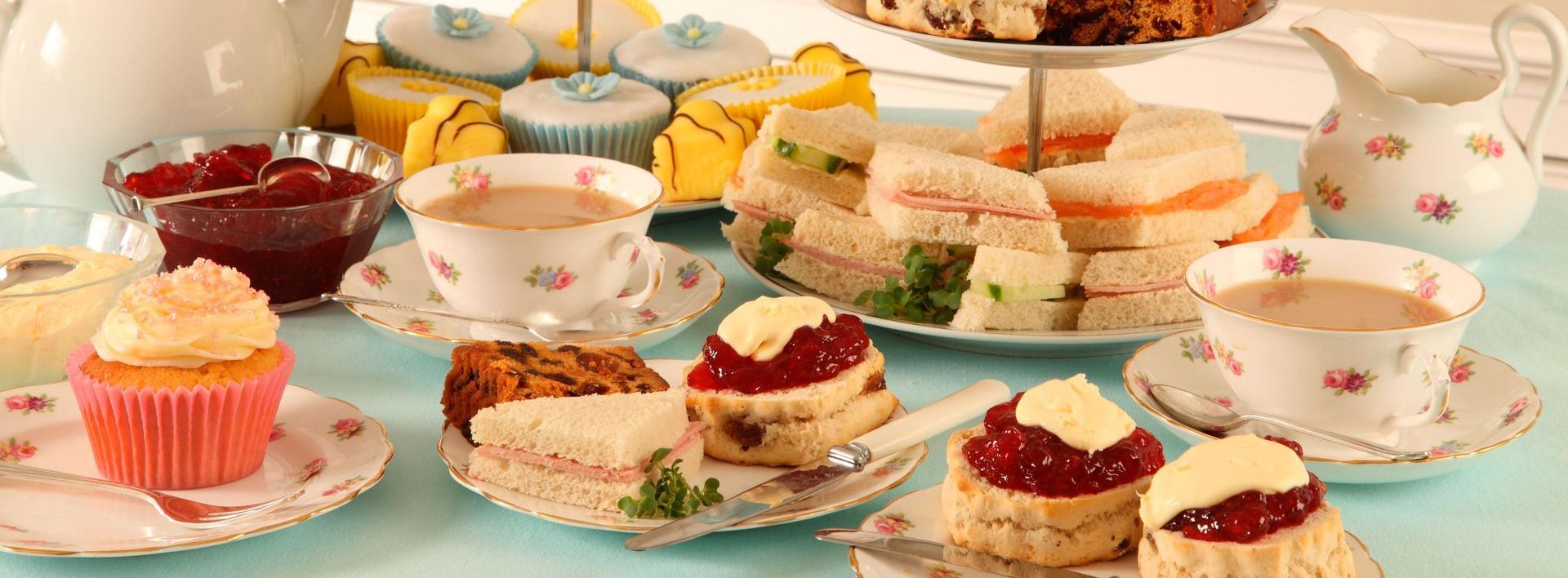 Zet u de thee? Dan neem ik voor u mee:-3 Finger sandwiches:met gerookte zalm,met komkommer en roomkaas,met eisalade,-Petit-four gebakje- Zoet gebakje-Wraps hartig-2 Scones met jam en kaneelboter-Chocolademousse